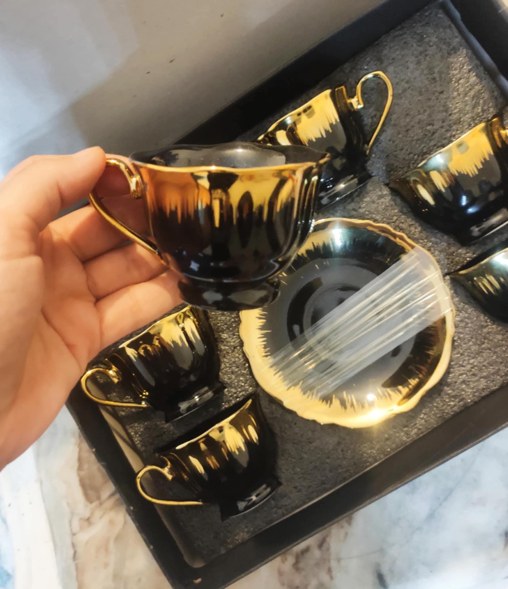 طقم فناجين قهوة ١٢ قطعة (٦ فناجين كبيرة + ٦ أطباق)